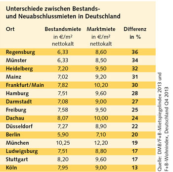Unterschiede zwischen Bestands- und Neuabschlussmieten in Deutschland