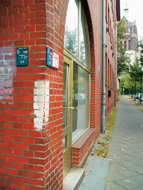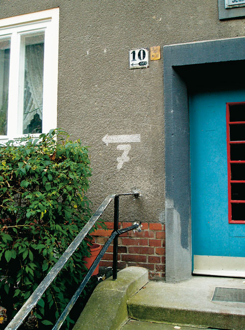 An Häuserecken findet man ungefähr auf Schulterhöhe zuweilen noch weiße, etwa 30 Zentimeter hohe Streifen. Auch sie bezeichneten Luftschutzräume, die unter dem Gebäude bis an die markierte Ecke heranreichten.