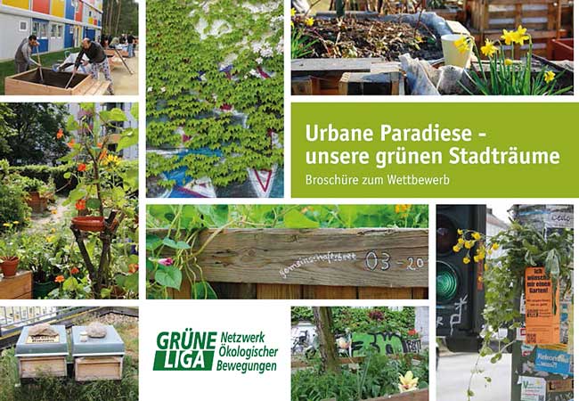 Vorgestellt werden 22 prämierte Projekte aus dem Hof- und Gartenwettbewerb „Urbane Paradiese – unsere grünen Stadträume“, den die Grüne Liga 2015 ausgerichtet hat. Die mit vielen Bildern versehenen Praxisbeispiele sollen Lust machen auf das gemeinsame Gärtnern, so Karen Thormeyer, Geschäftsführerin der Grünen Liga: „Sie ermutigen hoffentlich viele Menschen, ihr Umfeld zu begrünen und weitere blühende Oasen in Berlin zu schaffen.“ Außerdem gibt es in dem Leitfaden jede Menge Tipps und Anregungen, von der richtigen Pflanzenauswahl für Hochbeete bis hin zu den rechtlichen Rahmenbedingungen beim Gärtnern im öffentlichen Raum. Eine umfangreiche Adressenliste ist ebenfalls vorhanden. Im Kapitel Gärtnern mit Kindern wird zudem erläutert, welche Pflanzen die Kleinen faszinieren und welche vielfältigen Möglichkeiten es dafür in Berlin gibt.