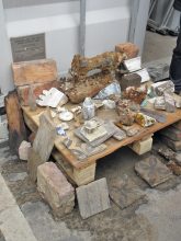 Der Molkenmarkt ist der älteste Marktplatz Berlins, und der Mühlendamm war die wichtigste Verbindung zwischen den beiden Gründungsstädten Cölln und Berlin. Die Ausgrabung soll Aufschlüsse über die Entwicklung dieser Keimzelle Berlins liefern. Die freigelegten Keller stammen aus dem 19. Jahrhundert, die auf Fundamenten aus der Barockzeit beruhen. Bisher ältestes Fundstück ist eine Münze von 1620. Aber auch jüngere Funde wie Ofenkacheln, Fliesen, Stuckteile, Steigbügel und eine Nähmaschine können den Archäologen Geschichte(n) erzählen. Die Ausgrabung auf 800 Quadratmetern ist nur ein Vorläufer für die 30-mal größere Grabung zwischen Rotem Rathaus, Altem Stadthaus und Klosterruine. „Das wird ein Mammutprojekt. So eine große Grabung haben wir in Berlin noch nicht gehabt“, sagt Michael Malliaris vom Landesdenkmalamt. Er bietet jeden Freitag eine kostenlose einstündige Führung über die Grabungsstätte an.