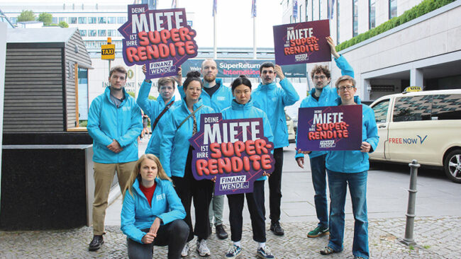 Vom 2. bis zum 6. Juni findet in Berlin die “SuperReturn International” statt, das weltweit wichtigste Treffen der Private-Equity-Branche. Ein breites zivilgesellschaftliches Bündnis wird die Konferenz mit einer Protestaktion begleiten. Zu dem Bündnis gehören neben der Bürgerbewegung Finanzwende die Vereinte Dienstleistungsgewerkschaft (ver.di), die Arbeitsgemeinschaft bäuerliche Landwirtschaft (AbL) und der Deutsche Mieterbund (DMB).