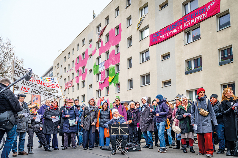 Unter dem Motto „Das geht uns alle an!“ haben am 28. März Hunderte Menschen ihre Solidarität mit der Habersaathstraße 40-48 bekundet. Aufgerufen hatten der Berliner Mieterverein, das Bündnis gegen Verdrängung & Mietenwahnsinn sowie das Bündnis gegen Zwangsräumungen.