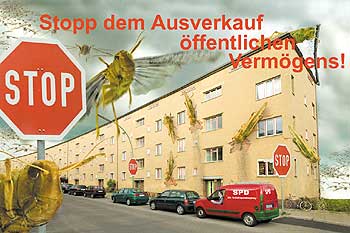 Trotz massiven Wohnungsleerstands nicht nur im Osten ist der deutsche Wohnungsmarkt von hohem Interesse für inländische und vor allem auch für ausländische Investoren. Grundstücke und Gebäude in Ballungsgebieten gelten im internationalen Vergleich als unterbewertet, so dass die Investoren mittelfristig mit hoher Rendite rechnen. Die Leidtragenden sind die Mieter – wegen erheblicher Mietsteigerungen und neuem Kündigungsrisiko. Deshalb wollte der Berliner Mieterverein den Bundeskanzler in Anspielung auf den Heuschreckenvergleich des SPD-Parteivorsitzenden Müntefering auf die Bedrohung und auf die Risiken für die Mieter hinweisen.