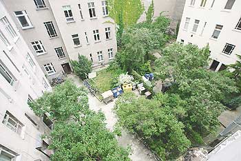 Die gründerzeitliche Bauspekulation hebt mit der Privatisierung der Grundstücksnutzung, der Mehrgeschossigkeit und Überbauung des hinteren Grundstücksteils die Beziehung von Haus und Garten auf. Die dichte Bebauung der Hinterhöfe entfernt nicht nur Sonne und Grünflächen aus dem Nahbereich der Wohnungen, sie nimmt den Hinterhofwohnungen sogar mit den Balkonen jene privaten Außenräume weg, die bis heute das Unterscheidungsmerkmal von Gewerbe- und Wohnungsbau sind. Als hygienisches, aber auch als kulturelles Problem haben die freudlosen Berliner Hinterhöfe Legionen großstadtkritischer Literaten zum Abgesang auf die Mietskasernenstadt stimuliert.