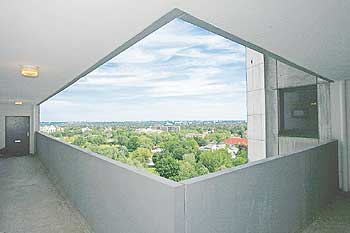Im Großsiedlungsbau der 60er und 70er Jahre wird das Umgebungsgrün für die hochverdichteten und gestapelten Wohnnutzungen kollektiviert. Je höher Balkone und Loggien liegen, desto weniger Aufenthaltsqualität bieten sie als Außenräume des Wohnens. Die Blickbeziehung muss den Freisitz ersetzen. Erschwerend kommt hinzu, dass nur in den seltensten Fällen die Außenräume so sorgfältig geplant sind wie in Alvaro Aaltos Gebäude im Hansaviertel. Auch das Umgebungsgrün ist zumeist weit entfernt von den Qualitäten des Tiergartens. Grün verkümmert in den Großsiedlungen zum Abstandsgrün.