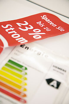 Das farbige EU-Energielabel ist für viele Verbraucher eine gute Orientierungshilfe. Es reicht vom grünen A (beste Energiebilanz) bis zum roten G (schlechteste Energiebilanz). Für Kühl- und Gefriergeräte existiert seit 2004 eine weitere Unterteilung der Energieklasse A in A+ und A++, denn die Technik hat sich weiterentwickelt und Geräte der Klasse A zählten irgendwann bei Weitem nicht mehr zu den effizientesten. „Nach Schulnoten ist ein normales A-Gerät nicht einmal befriedigend – die besten Geräte der Klasse A++ sind bis zu vierzig Prozent effizienter“, so Corinna Fischer vom Verbraucherzentrale Bundesverband (vzbv). Ab 1. Januar 2011 werden die Klassen A+ und A++ nach dem Willen der EU-Kommission wieder wegfallen und für besonders energieeffiziente Geräte stattdessen in zwei Stufen die neuen Bezeichnungen „A -10%“ bis „A -80%“ eingeführt. Sie zeigen an, um wie viel Prozent ein Gerät weniger Energie verbraucht als ein vergleichbares in der Energieeffizienzklasse A.