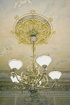Im Heimatmuseum Pankow, Heynstraße 8, lässt sich die originalgetreu wiederhergestellte Stuckdecke einer bürgerlichen Wohnung besichtigen.