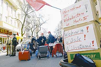Gerade in Kreuzberg, wo im Rahmen der Internationalen Bauausstellung (IBA) in den 80er Jahren über 2200 Sozialwohnungen gebaut wurden, ist die Verdrängungsgefahr für die Sozialmieter groß. Die einst im Schatten der Mauer gelegenen, heute aber zentralen Wohnanlagen regen die Fantasie der Immobilienverwerter an. Im Block zwischen Kochstraße, Wilhelmstraße und Zimmerstraße wurden die Mieten auf 8 Euro angehoben und im Karree Oranien-/Linden-/ Feilnerstraße werden Sozialwohnungen unter dem Namen „Feilnerhöfe“ sogar als Eigentums-Appartments verkauft, und zwar zu stolzen Preisen von 1900 bis 2100 Euro pro Quadratmeter.