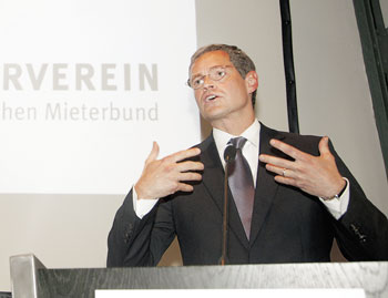 Der Mietervereinsvorsitzende Edwin Massalsky hatte den Senator mit der kritischen Anmerkung eingeführt, dessen Partei und der SPD-geführte Vorgängersenat habe durch eine geschönte Einschätzung der Lage am Berliner Wohnungsmarkt und eine viel zu späte Korrektur die heutige Anspannung und Misere mit verursacht. Offener Widerspruch blieb aus, der Senator relativierte lediglich, dass man es auf dem Territorium Berlins mit zwölf Städten und ebenso vielen verschiedenen Problemlagen zu tun habe. Immerhin bekannte Müller, dass es die jahrelang behaupteten 100.000 leeren und am Markt verfügbaren Wohnungen in Berlin „nicht mehr“ gebe.