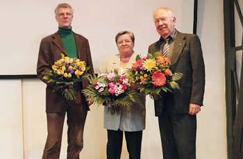 Die Delegierten-versammlung des BMV: ein neugewählter Vorstand – Edwin Massalsky, Dr. Regine Grabowski, Dr. Rainer Tietzsch (oben), Hauptredner Siebenkotten vom DMB (Mitte) und eine engagierte Diskussion (unten)