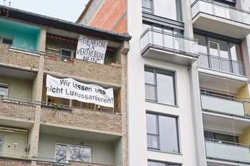 Einen Sieg für die Meinungsfreiheit konnten auch die Mieter der Calvinstraße 21 erringen – zumindest in erster Instanz. An einem Balkon hatten sie ein Transparent mit der Aufschrift „Wir lassen uns nicht luxussanieren“ angebracht. Eine solche Äußerung sei „weder provozierend noch misskreditierend“, entschied das Amtsgericht Mitte (Amtsgericht Mitte vom 26. Februar 2014 – 119 C 408/13). Die Formulierung enthalte keine unsachlichen, sittenwidrigen oder gar strafbaren Inhalte. „Luxussanierung“ sei kein Kampfbegriff, sondern ein in der Rechtsprechung üblicher Terminus. Die Netzplane, die der Vermieter anbringen ließ, um das Transparent zu verdecken, müsse entfernt werden, entschied das Gericht. Der Vermieter ging jedoch in Berufung, am 12. Juni ist die Verhandlung vor dem Landgericht.