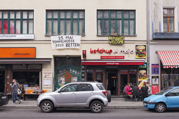 Zwischen Bürgersteig und zweitem Stock findet sich zu manch‘ umstrittenem Berliner Thema ein Statement