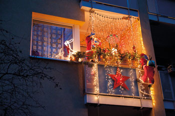 Und nun zur Frage, die alle Fußballfans interessiert: Darf man sein Fenster mit der Fahne seiner Lieblingsmannschaft schmücken? Rechtsprechung gibt es dazu kaum, offenbar haben die meisten Vermieter damit kein Problem. Grundsätzlich gilt: Solange die Fahne nicht überdimensional ist und die Nachbarn stört, dürfte das kaum zu beanstanden sein. Das gehört zur freien Entfaltung der Persönlichkeit – ebenso übrigens wie die kletternden Weihnachtsmänner und Rentierschlitten, die um die Weihnachtszeit Fenster und Balkone bevölkern. Natürlich sollte man darauf achten, dass Teile der Dekoration nicht herunterfallen und Passanten verletzten können.