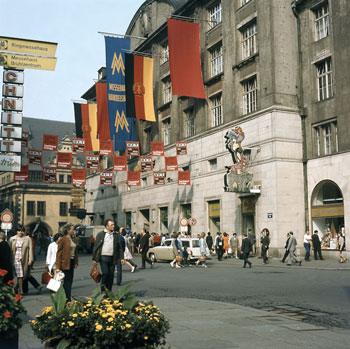 Auch in der DDR war die Nationalfahne allgegenwärtig. An den beiden höchsten Feiertagen – dem Tag der Arbeit 1. Mai und dem Gründungstag der DDR 7. Oktober – war die Ost-Republik komplett beflaggt. In vielen Familien wurden Fahnen aufbewahrt, die zu diesem Anlass sorgsam gebügelt wurden, um sie anschließend aus dem Fenster zu hängen. Zwar gab es dazu gar keine gesetzliche Verpflichtung – eine „Zwangsbeflaggung“ für Wohnhäuser existierte nicht. Einige taten es aus Überzeugung, andere sozusagen in vorauseilendem Gehorsam. Denn wer nicht mitmachte, musste damit rechnen, am nächsten Tag im Betrieb angesprochen zu werden. Neben linientreuen Nachbarn gab es sogenannte Hausgemeinschaftsleiter (HGL), die Fahnenverweigerer an die staatlichen Stellen meldeten. Keine Fahne aus dem Fenster zu hängen, war also schon eine klare Haltung. Man konnte an diesen Tagen deutlich sehen, in welchen Wohngegenden besonders viele Parteigenossen wohnten und wo nicht. In den Neubaugebieten, wo übrigens zum Teil schon beim Bau an Halterungen für die Fahne gedacht worden war, sah man sehr viel mehr Fahnen als in den Altbauvierteln von Prenzlauer Berg oder Friedrichshain.