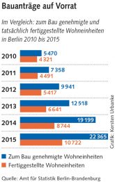 Zwischen 2010 und 2014 wurden rund 54.500 Wohnungen zum Bau genehmigt, aber nur 29.600 tatsächlich fertig gestellt (siehe Diagramm). Viele Eigentümer, die gar nicht daran denken, selbst zu bauen, lassen sich vom Bauamt eine Baugenehmigung ausstellen, damit sie das Grundstück deutlich teurer verkaufen können. Durch diese Spekulation wird nicht nur der Bau neuer Wohnungen erheblich verzögert, sondern auch stark verteuert, denn derjenige, der am Ende tatsächlich die Wohnungen baut, muss den spekulativ hochgetriebenen Grundstückspreis refinanzieren.