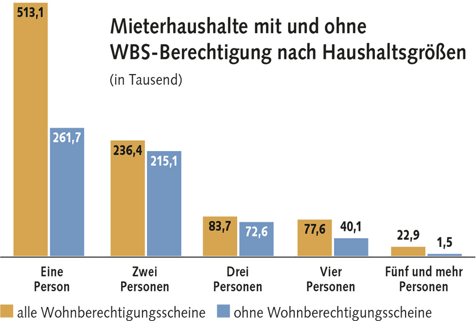 Von den 1,52 Millionen Berliner Mieterhaushalten leben rund 180.000 unter der Armutsschwelle, weitere 150.000 Haushalte gelten als armutsgefährdet. Zusammen machen sie 22 Prozent der Haushalte aus. Darüber hinaus gibt es 180.000 Haushalte, die nicht armutsgefährdet sind, aber ein so niedriges Einkommen haben, dass sie sich auf dem aktuellen Wohnungsmarkt nicht aus eigener Kraft mit angemessenem Wohnraum versorgen können. Insgesamt steckt also jeder dritte Berliner Haushalt in einer solch prekären Lage. Besonders stark sind davon Alleinwohnende und Haushalte mit vier oder mehr Personen betroffen.