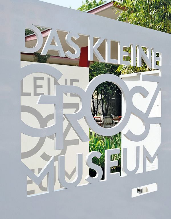 Das „Kleine Grosz Museum“ ist verborgen hinter einer schlichtweißen Mauer mitten im Schöneberger Kiez in einer unter Denkmalschutz stehenden ehemaligen Shell-Tankstelle untergebracht: Wechselnde Sonderausstellungen zeigen dort das Schaffen von Georg Ehrenfried Groß (1893 bis 1959), dem Dadaisten, Maler und Karikaturisten, den insbesondere die Erfahrungen des Ersten Weltkriegs geprägt haben.