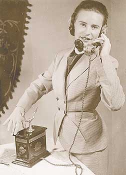 ‚Telefonfräulein‘ Sigrid Lange als Model für eine DeTeWe-Werbekampagne im Jahr 1953
