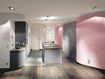 Die Raufasertapete ist dabei ebenso Geschichte wie die Beschränkung der Elektrik auf ein oder zwei Steckdosen im Zimmer. Ein Fahrstuhl führt vom Innenhof direkt in die drei Suiten im Dachgeschoss. Ein vollelektronisches Schließsystem und die videounterstützte Türkommunikation sorgen für Sicherheit. Im Eingangsbereich befindet sich ein Terminal, mit dem alle elektronischen Geräte in der Wohnung zentral gesteuert werden: Licht, Lautsprecher, Heizung, Fahrstuhl, Schließanlage und Jalousien. Natürlich ist das auch von unterwegs über Handy oder tragbaren Computer möglich. Das hauseigene Intranet funktioniert wie ein Schwarzes Brett: Wenn jemand ein Päckchen für den Nachbarn angenommen hat, kann er den Empfänger informieren, wann er dieses abholen kann.