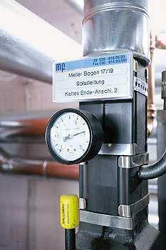 Ein Haus in Burgdorf im schweizerischen Emmental zeigt, was möglich ist: Dort wurde im vergangenen September das erste Mehrfamilienhaus eingeweiht, das zu 100 Prozent mit Solarenergie versorgt wird. 276 Quadratmeter Kollektorfläche auf dem Dach wandeln die Sonnenstrahlung in warmes Wasser um, das ein 205.000 Liter fassender Behälter speichert und die Bewohner von acht Mietwohnungen zwischen 82 und 123 Quadratmetern Fläche sowohl mit warmem Brauchwasser versorgt als auch mit Heizungswärme. Ein vertikales System von Wärmetauschern im Speicher und die Auslegung der Heizung als Niedertemperaturfußbodenheizung sorgen dafür, dass jede Differenz zwischen Kollektor- und Speichertemperatur genutzt werden kann. Holzisolierfenster mit einem Wärmedurchgangskoeffizienten (U-Wert) von 0,5, eine 22 Zentimeter dicke Außendämmung an der ansonsten konventionellen Bauweise aus Kalkstein sowie eine Lüftungsanlage mit Wärmerückgewinnung garantieren zusätzlich, dass der Wärmebedarf reduziert wird. Bereits Anfang Dezember wurde deutlich, dass die Anlage komfortabel ausgelegt ist und im Speicher noch genügend Wärme für den restlichen Winter verfügbar sein würde. Die Botschaft, die das eidgenössische Projekt vermittelt: Vollständig solare Wärmeerzeugung ist auch im Mehrfamilienhaus möglich.