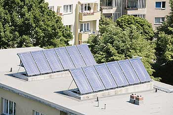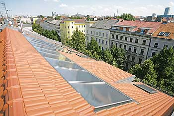 In Berlin stehen rund 140.000 Mehrfamilienhäuser und große Mietwohnungsgebäude. „Doch nur auf circa 450 von ihnen sind solarthermische Anlagen über 20 Quadratmeter Kollektorfläche installiert“, weiß Kerstin Kallmann, Bereichsleiterin bei der Berliner Energieagentur. Es gibt also noch einiges zu tun. Die Mehrzahl der Mieter wünscht sich eine solarthermische Anlage auf dem Dach, wie der Bund der Energieverbraucher in einer Befragung herausgefunden hat. „Leider haben Mieter in der Regel nicht die Möglichkeit zu entscheiden, welches Heizungssystem in ihrer Wohnung genutzt wird“, beklagt Johannes Lackmann, Präsident des Bundesverbandes Erneuerbare Energie (BEE).