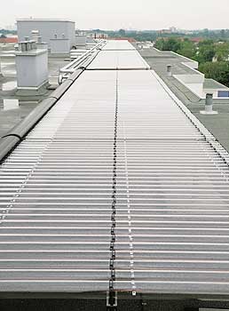Angesichts steigender Betriebskosten und als Beitrag zur Senkung des Kohlendioxidausstoßes entschied sich auch die Wohnungsbaugenossenschaft Märkische Scholle dazu, ihren Wohnungsbestand in Berlin-Reinickendorf mit solarthermischen Anlagen auszustatten. Gleichzeitig wurden die haustechnischen Anlagen in den Wohnungen und Kellern umfassend erneuert und die Elektrodurchlauferhitzer entfernt. „Das waren die Voraussetzungen für einen sinnvollen Einsatz von Sonnenenergie“, sagt Vorstandsmitglied Jochen Icken. Innerhalb von zwei Jahren wurden auf 14 Gebäuden rund 570 Quadratmeter Sonnenkollektoren installiert. Sie versorgen 498 Wohnungen.