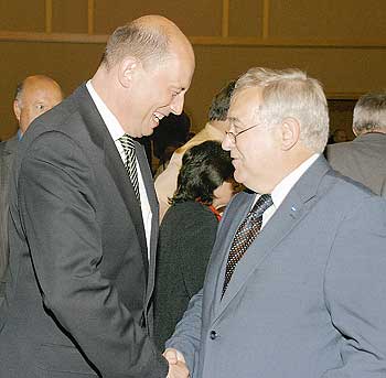 Einen sichtlich aufgeräumten Bundesverkehrsminister Tiefensee (links) begrüßte DMB-Präsident Dr. Franz-Georg Rips auf dem Deutschen Mietertag