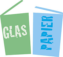 In die Grüne Tonne für Glas oder die sogenannten „Iglus“ am Straßenrand kommen leere Flaschen (nicht Mehrweg!), Glasverpackungen und Gläser, jeweils getrennt nach Weiß- und Buntglas. Auf keinen Fall dürfen Spiegel, Fensterglas, Glühlampen oder andere Spezialgläser in den Altglasbehälter – sie müssen als Restmüll entsorgt werden. Glas kann ohne Qualitätsverluste beliebig oft eingeschmolzen und wiederverwertet werden. Über 80 Prozent des Altglases werden in Deutschland recycelt. Nach Angaben der Deutschen Umwelthilfe (DUH) besteht heute jede Flasche zu 70 bis 75 Prozent aus Altglas.