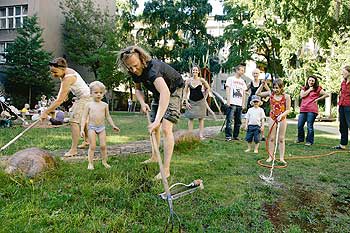 Gemeinschaftsgartenprojekte sorgen nicht nur für Zucchini und Tomaten mitten im Häusermeer, sondern beleben auch die Nachbarschaft. Eines von vielen in Berlin ist „Rosa Rose“. Die Friedrichshainer Aktivisten haben in diesem Frühjahr wieder einmal voller Elan neu angefangen. Auf einem Grundstück im Karree Frankfurter Allee/Jessnerstraße wollen sie den Gemeinschaftsgarten Rosa Rose aufbauen. Es ist nicht ihr erster Start: Schon im Mai 2004 hatten einige Bewohner der Kinzigstraße zur Aktion Nachbarschaftsgarten aufgerufen. Viele Jahre lagen in ihrem Wohnviertel drei nebeneinander liegende Grundstücke brach. Ideen für die 2000 Quadratmeter in einem an Grünflächen armen Stadtteil waren schnell gesammelt. Material dafür wurde gespendet: Mutterboden, Sa-men, kleine Bäume, Sträucher und vieles mehr. Doch 2007 und 2008 wurden die aufblühenden Grundstücke an zwei Investoren verkauft. Dort entstehen jetzt zwei Wohnhäuser mit 17 Eigentumswohnungen samt privatem Garten und Badeteich. Im vergangenen Sommer verließ die Gartengruppe von Rosa Rose den letzten verbliebenen grünen Rest mit einem großen Umzugs-Pflanzenfahrradkorso.