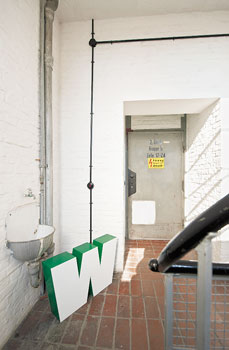 Von der früheren Nutzung zeugen übrigens heute auch noch die alten Leuchtbuchstaben der Bewag, von denen jeder der fünf Bewohner einen bekommen hat – Susanne Stock das „W“.
