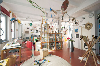 „Zelle 17-24“ steht auf der schweren Metalltür, darunter „Hochspannung Vorsicht! Lebensgefahr“. Was sich dahinter verbirgt, hat allerdings so gar nichts mit einer Zelle zu tun und auch nichts Gefährliches an sich: Wenige Schritte durch einen Flur, dann fällt der Blick in einen großen offenen Raum. Er vereint Wohnzimmer, Arbeitsbereich und Küche. Nur drei Pfeiler dienen als Stützen, tragende Wände gibt es keine. „Anfangs war der Raum noch größer“, erzählt Susanne Stock, die mit ihrer Familie in der zweiten Etage des Atelierhauses Zeppelin in der Brüsseler Straße im Wedding wohnt. „Doch inzwischen haben wir drei Kinder – deshalb haben wir Wände eingezogen und Räume abgetrennt.“