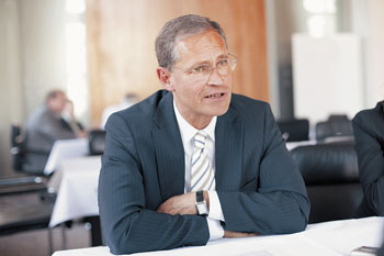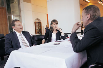 Das Gespräch mit Michael Müller führte MieterMagazin-Redakteur Udo Hildenstab (Bildmitte: Pressesprecherin Daniela Augenstein)
