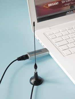 Eine Möglichkeit, ohne Fernsehgerät fernzusehen, bietet der DVB-T-Stick. Man kann dieses kleine Gerät über eine USB-Schnittstelle an den Heimcomputer oder den Laptop anschließen und damit die terrestrisch zu empfangenden Fernsehprogramme auf dem PC-Bildschirm schauen. Eine kleine mitgelieferte Antenne empfängt die Signale, und der Stick wandelt sie für den Rechner um. Der Vorteil ist, dass man so überall, auch im Freien, fernsehen kann. Es gibt auch TV-Sticks, die sich darüber hinaus zu Hause an die Kabelsteckdose anschließen lassen, so dass man damit auf dem Computer Kabelfernsehen anschauen kann. Die DVB-T-Sticks kosten je nach Ausstattung zwischen 15 und 70 Euro.