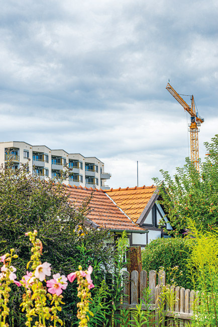 Da wächst der Druck auf unbebautes Land vor allem im Innenstadtbereich, und die privaten grünen Rückzugsorte geraten in den Fokus stadtentwicklungspolitischer Debatten. Zu Recht, meint Christian Müller, Vorstandsmitglied der Baukammer Berlin: „Die Preise für Bauland in der Stadt liegen mittlerweile zwischen 3000 und 5000 Euro pro Quadratmeter“, so der Ingenieur. „Das bringt kommunale Wohnungsbaugesellschaften an ihre Grenzen. Denen bleiben eigentlich nur noch wenige, oft schwer zu erschließende Grundstücke.“ Würden 20 Prozent der Berliner Kleingartenflächen an ihren Rändern bebaut, könnten 200.000 Wohnungen mit je 46 Quadratmetern entstehen, rechnet Müller vor. Weil diese Areale bereits an die Strom- und Wasserversorgung angeschlossen sind, würden beträchtliche Kosten gespart. Und wenn die Häuser mit einer Tiefe von 12 Metern unmittelbar am Bürgersteig anschließen, schirmten sie die dahinter liegenden Gartenkolonien sogar vom Verkehrslärm ab, dem sie jetzt oft ausgesetzt sind. Für privaten Gemüseanbau und ein ruhiges Plätzchen hinter der eigenen Hecke blieben immer noch rund 80 Prozent Kleingartenfläche erhalten. „Das ist auch eine Frage der Verteilungsgerechtigkeit“, argumentiert der Baufachmann. „Jeder muss von seinem Besitzstand etwas abgeben. Und Schrebergärten okkupieren wertvolles Bauland.“