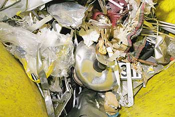 Für die Alba AG rechnet sich das, denn diese zusätzlich erfassten Wertstoffe werden recycelt und sind bares Geld wert: In Berlin-Mahlsdorf, wo Alba nach eigener Aussage Deutschlands modernste Sortier- und Auf-bereitungsanlage für Abfälle aus der Gelben Tonne gebaut hat, werden 13 unterschiedliche Wertstoffe separiert. Die reinen Plastikreste werden zu Granulat verarbeitet, das dann für die Herstellung von Baueimern oder Parkbänken verwendet werden kann. Wertvoller sind die Metalle. Sie werden bei so hohen Temperaturen eingeschmolzen, dass man daraus so ziemlich alles von der Konservendose bis zur Autokarosserie produzieren kann. „Das Lebensmittelrecht schließt bei Plastikmüll eine Wiederverwertung im Lebensmittelbereich aus, da hier mit niedrigeren Temperaturen gearbeitet wird und möglicherweise nicht alle schädlichen Stoffe beseitigt werden“, erklärt ein Mitarbeiter der Sortieranlage. „Metalle können hingegen immer wieder und für alles recycelt werden.“
