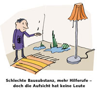 Mieter haben Anspruch auf eine intakte Wohnung. Dafür zahlen sie die Miete. Wenn aber die Fenster undicht sind, sich Schimmel an feuchten Wänden bildet, es durchregnet, die Balkonbrüstung bröckelt, das Gas abgestellt wird oder die Heizung ständig ausfällt und der Vermieter sich hartnäckig weigert, die Mängel abzustellen, dann können Mieter auch das Bau- und Wohnungsaufsichtsamt ihres Bezirks einschalten. Das Amt kann ein öffentlich-rechtliches Verfahren gegen den säumigen Vermieter einleiten und ihn – im Notfall auch mit Zwangsgeldern – zur Mängelbeseitigung drängen. Im äußersten Fall kann das Amt auch per Ersatzvornahme den Schaden selbst beseitigen lassen. In der Praxis ist die Bau- und Wohnungsaufsicht jedoch alles andere als effizient.