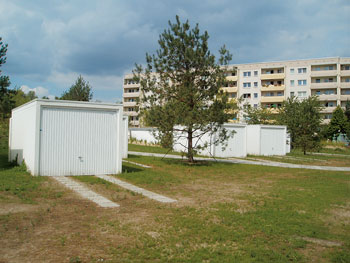 Zum Abschluss des Stadtumbaus Ost übergab Degewo-Vorstand Frank Bielka 25 sogenannte Multifunktionsboxen an die Mieter. Die kurz „Mufus“ getauften Boxen sind einfache weiße Fertiggaragen, die als Lager-, Hobby- oder Probenraum genutzt werden können – oder eben auch als Autoabstellplatz. Die Anwohner hatten sich für die Gestaltung der Grünfläche im Schorfheideviertel vor allem Garagen gewünscht. Anstelle eines abgerissenen Wohnhauses wurden die Mufus locker über das Gelände verteilt und sollen an eine grasende Schafherde in der Schorfheide erinnern.