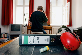Natürlich kann es in jedem Wohnhaus mit mehreren Mietparteien passieren, das Einwohner mehr Krach verursachen, als ihre Nachbarn verkraften. Aber normalerweise können derartige Konflikte, sofern man sich nicht untereinander einig wird, mit Hilfe der Wohnungsverwaltung gelöst werden. Im Fall von Leimann war das ausgeschlossen. Die neue Hausverwaltung war so gut wie nicht erreichbar: „Ich habe mich wöchentlich, manchmal täglich – schriftlich, telefonisch, per E-Mail – bei der Hausverwaltung beschwert“, sagt er, und fügt hinzu: „Meistens bekam ich gar keine Antwort oder wurde vertröstet.“ Auch als ab Januar 2010 der Eigentümer selbst die Hausverwaltung übernahm, hatten Leimanns Beschwerden keine Konsequenzen.