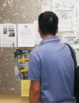 Wie in anderen Universitätsstädten bestimmen Junge, Kreative, Mobile und Einkommensschwache die Wohnungsnachfrage entscheidend mit. „160 000 Studenten kamen zum Semesterstart 2013“, erklärt Jürgen Morgenstern, Pressesprecher des Berliner Studentenwerks. „Noch 2011 waren es 20.000 weniger gewesen. Wir können ihnen nur knapp 9400 Wohnheimplätze anbieten. Das ist eine Versorgungsrate von etwa sechs Prozent!“ Das Studentenwerk ist zwar nicht der einzige, aber doch der größte Anbieter von studentischen Wohnungen. Bei einem durchschnittlichen Preis pro Heimplatz von 204 Euro (zwischen 130 und 365 Euro) ist es für viele Suchende die erste Option. „Weil der Druck immer größer wird, führen wir seit drei Jahren wieder eine Warteliste“, so Jürgen Morgenstern. Wer sich dort registrieren lassen will, braucht die Zulassung zum Studium an einer der 19 beim Studentenwerk gelisteten Berliner Hochschulen und die Entscheidung für eines der Wohnheime.
