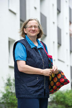 Auch Barbara Speckner wollte in ein ganz bestimmtes Gebäude, als sie sich vor fünf Jahren entschloss, ins Märkische Viertel zu ziehen: ein ehemaliges Seniorenhaus am Eichhorster Weg. Die 57-Jährige schwärmt vom besonderen Flair dieses Blocks: „Ich habe liebe Nachbarn, die Verkehrsanbindung ist hervorragend und man hat alles, was man braucht.“