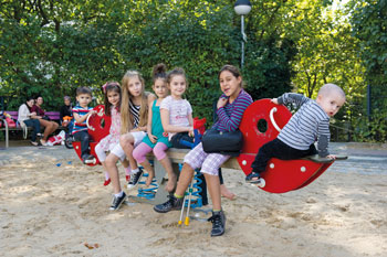 Allerdings ist ihr Block in dieser Hinsicht nicht typisch. Wer heute durch das Märkische Viertel spaziert, sieht auf den großzügigen Grünflächen zwischen den Sechzehngeschossern fast immer Kinder spielen. Zwar sind viele Bewohner mit dem Viertel alt geworden, aber auch der Anteil der Kinder und Jugendlichen ist groß: „Gerade in letzter Zeit beobachten wir einen verstärkten Zuzug von Familien“, sagt die Sprecherin der Wohnungsbaugesellschaft Gesobau Kirsten Huthmann. Für Kinder ist die Siedlung ideal: Es gibt hügelige, zum Teil verwilderte Wiesen, Bänke, Spielplätze und sogar einen Wasserlauf, den Nordgraben. Weil die hofartig angelegten Wohnblocks von der Straße abgeschirmt sind, können die Kinder hier unbeaufsichtigt spielen.