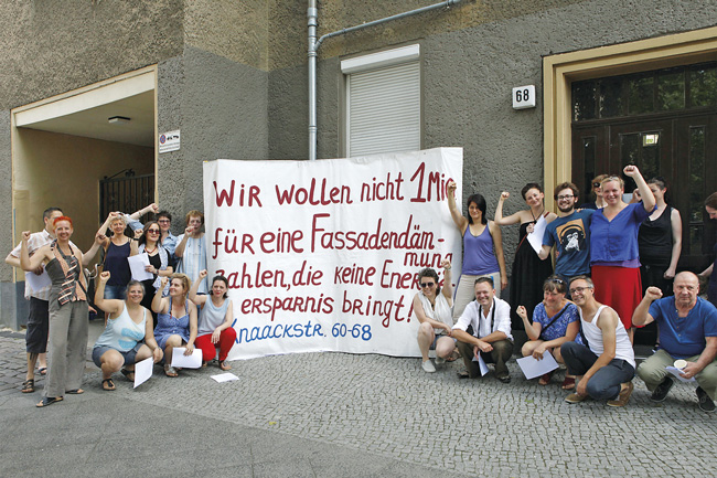 Ende Juni tönte ein neues Lied durch Prenzlauer Berg: „Energie, die sparen wir nicht ein. Muss die Dämmung wirklich sein? Hängeklos und Handtuchwärmer machen uns doch nur noch ärmer.“ Gedichtet und vorgetragen haben es die Mieter des Wohnblocks Knaackstraße 60-68, die damit gegen die im Januar angekündigte Modernisierung durch die städtische Wohnungsbaugesellschaft Gewobag protestierten.