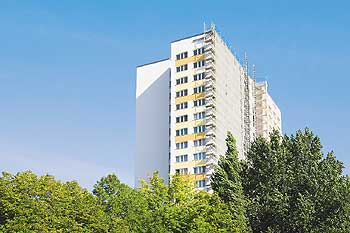 An Kooperationsbereitschaft fehle es allerdings der Howoge, beklagt Monique Flint, die als Mieterin der Schulze-Boysen-Straße 35 seit März massiv von den Baumaßnahmen betroffen ist. „Es ist laut und die Zustände sind katastrophal. Wir konnten nur in Wohn- und Schlafzimmer leben und unsere sanitären Anlagen überhaupt nicht benutzen. Monatelang wurde an zwei Vormittagen in der Woche das Wasser abgestellt, zeitweise auch der Strom.“ Auf Druck der Mieter stellte die Wohnungsbaugesellschaft häufig wechselnde Leerwohnungen zur Benutzung von Toilette und Bad zur Verfügung. „Doch was nützt einem das, wenn die im 17. Stock liegen und der Fahrstuhl durch die Bauarbeiten ständig blockiert ist?“, fragt Mieterin Flint. Sie selbst wohnt übrigens im Erdgeschoss. „Das Problem ist, dass der Vermieter im Rahmen einer ökologisch sinnvollen Maßnahme eine behutsame Abwicklung des Sanierungsgeschehens vermissen ließ“, kritisiert der stellvertretende Hauptgeschäftsführer des Berliner Mietervereins (BMV), Reiner Wild.