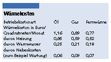 Nach unterschiedlichen Energieträgern (Öl, Gas) beziehungsweise Versorgungsarten (Fernwärme) wurden die Durchschnittswerte (siehe unser Kasten „Wärmekosten“) ermittelt, wobei Daten für sonstige gewerbliche Wärmelieferung (Contracting) nicht hinreichend gesammelt werden konnten.