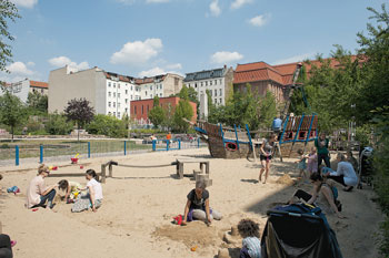 Anstelle des abgerissenen Rettungsamtes entstand ab 1998 der Stadtplatz „Marie“ – zunächst nur als Zwischennutzung, denn das Grundstück war für den Neubau einer Polizei- und Feuerwache vorgesehen. Nachdem jedoch die Feuerwehr eine Ersatzfläche bekam, war die „Marie“ dauerhaft gesichert. Die Anwohner haben die Grünanlage selbst in einem Workshop entworfen und sogar beim Bau mitgeholfen. „Man merkt es dem Platz an, dass er von Leuten gemacht wurde, die den Park haben wollten“, sagt Constanze Siedenburg von der Betroffenenvertretung Winsstraße. Der Platz ist zum Mittelpunkt des Viertels geworden. „Der ganz besondere Erfolg liegt in dem unglaublichen Engagement der Bewohner“, lobte denn auch Stadtentwicklungssenatorin Ingeborg Junge-Reyer (SPD) bei der Eröffnung einer Ausstellung über das Sanierungsgebiet.