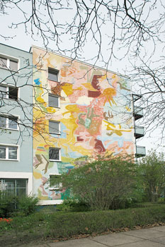 Im Hellersdorfer Grabenviertel stellte der chilenische Künstler César die Beziehung von Wohnen und Bewohnern dar