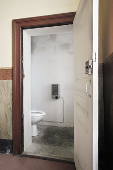 Das Außenklo ist ein im Verschwinden begriffenes, historisches Charakteristikum des Berliner Mietshauses. Sollten sich also nicht die Denkmalbehörden darum kümmern? Schließlich ist es eine Aufgabe der Denkmalpflege, auch das unbequeme bauliche Erbe wenigstens beispielhaft zu bewahren. Das Landesdenkmalamt hat jedoch kein konservatorisches Interesse am Außenklo, wie Petra Rohland, Sprecherin der übergeordneten Stadtentwicklungsverwaltung, erklärt: „Für den Denkmalschutz ist dieses Thema nicht von Bedeutung.“