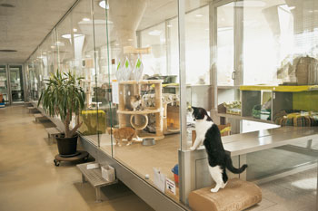 Den sehr unterschiedlichen Ansprüchen von Katzen – alten oder jungen, Rassekatzen oder Mischlingen – versucht das Berliner Tierheim trotz Überbelegung mit spezieller Pflege und vor allem ganz verschiedenen Boxengrößen gerecht zu werden. Hier gibt es eine Krankenstation, das „Haus“ für eine ganze Katzenfamilie, in dem die Jungen lange bei ihrer Mutter bleiben können. Es gibt Doppel-, Gruppen- und auch Einzelboxen für jene Tiere, die andere neben sich nicht dulden. „Streichelpaten“ – ehrenamtliche Helferinnen des Tierschutzvereins – kommen regelmäßig und kümmern sich um die Tiere.