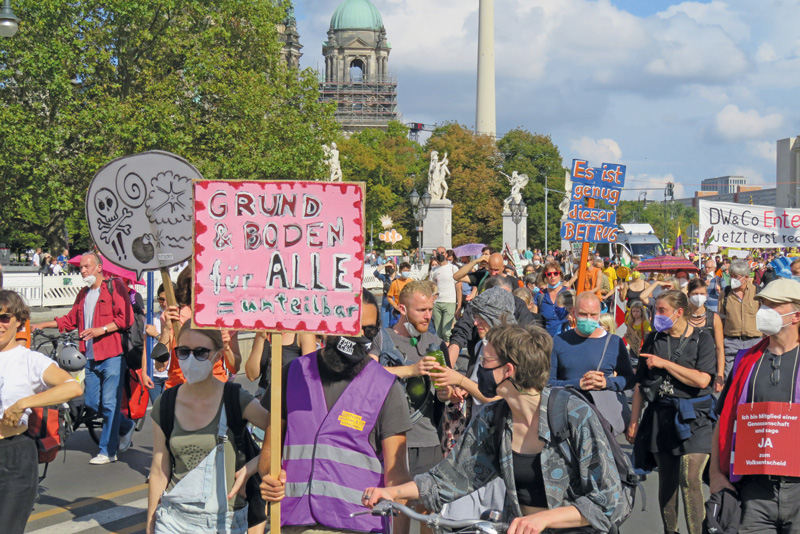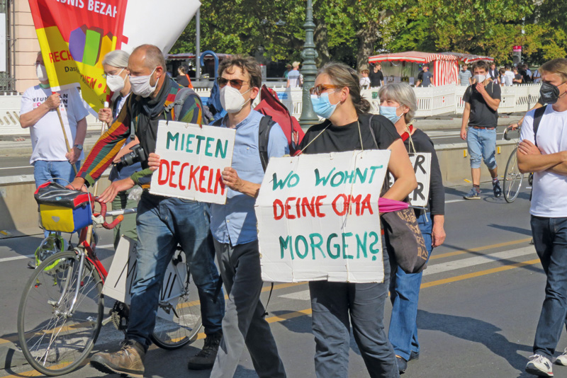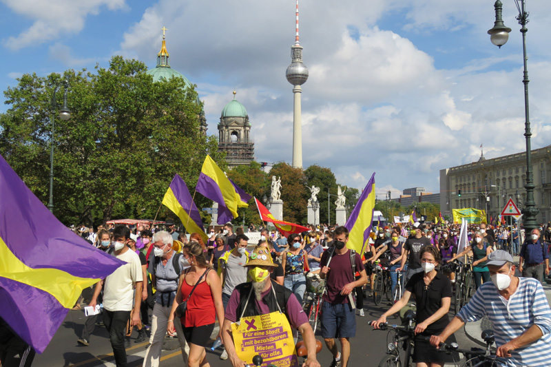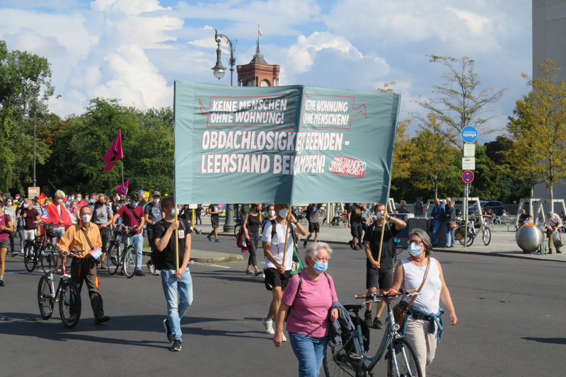 Zwei Wochen vor den Wahlen am 26. September gingen noch einmal Tausende auf die Straßen der Hauptstadt, um den Blick auf fehlenden Wohnraum und Mieten-Explosion zu richten – die „sozialen Fragen unserer Zeit“ (Innen- und Bauminister Horst Seehofer, CSU). Der Forderung an eine künftige neue Regierung, bei der Mieten- und Wohnungspolitik einen radikalen Kurswechsel zu vollziehen, schlossen sich auch wieder die Dachverbände sozialer Organisationen wie der Deutsche Gewerkschaftsbund und der Paritätische Wohlfahrtsverband an – ein überzeugendes Zeichen, dass die Wohnungskrise in allen Bereichen der Gesellschaft als bedrohlich wahrgenommen wird.