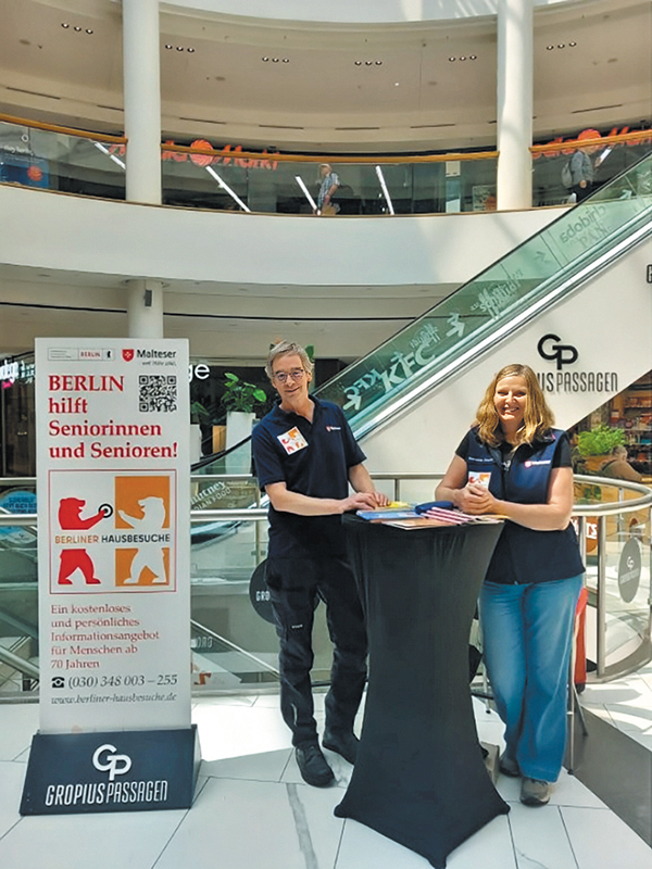 Seit 2024 führt die katholische Organisation „Malteser Hilfsdienst e.V.“ ihre „Berliner Hausbesuche“ in allen Berliner Bezirken durch und hat seither rund 5 000 Senior:innen beraten. Die direkten Ansprechpartner:innen finden sich auf der Website berliner-hausbesuche.de. Hier sind auch Orte wie Einkaufszentren aufgeführt, an denen die Malteser regelmäßig Info-Stände zum Thema betreiben. Projektkoordinatorin Indra Sarkar beantwortet außerdem Anfragen telefonisch oder über ihre E-Mail-Adresse. Wichtig zu wissen: Die Mitarbeiter:innen der „Berliner Hausbesuche“ melden sich niemals unaufgefordert bei Senior:innen.